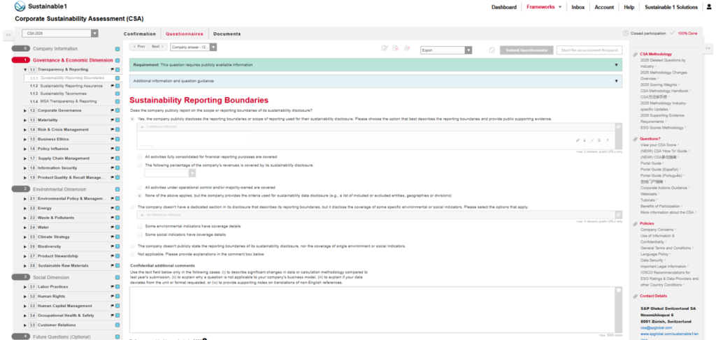 Wichtig: Die Bewertung basiert auf Unternehmensdaten aus dem CSA sowie auf öffentlich verfügbaren Informationen.